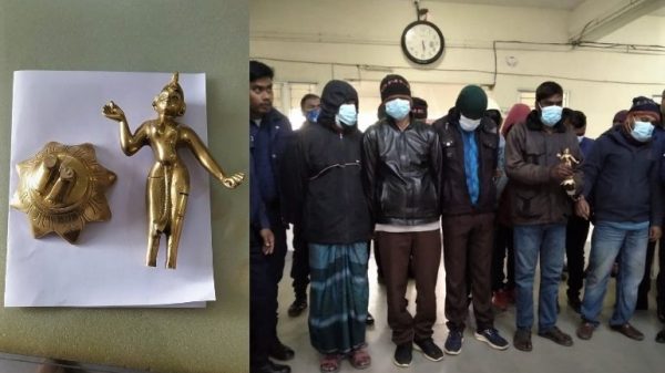পঞ্চগড়ের বোদা উপজেলায় ভারতে পাচারের সময় ৫১ লাখ ৪৭ হাজার ৮৮৭ টাকা দামের সরস্বতীর নকল স্বর্ণমূর্তিসহ ১০ জনকে আটক করেছে পুলিশ। সোমবার (৭ ফেব্রুয়ারি) দিবাগত রাতে উপজেলার মাড়েয়া বামনহাট ইউনিয়নের