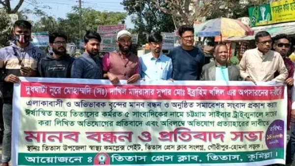 কুমিল্লায় পাঁচ সাংবাদিকের নামে সাইবার ট্রাইব্যুনালে মামলা, প্রতিবাদে মানববন্ধন